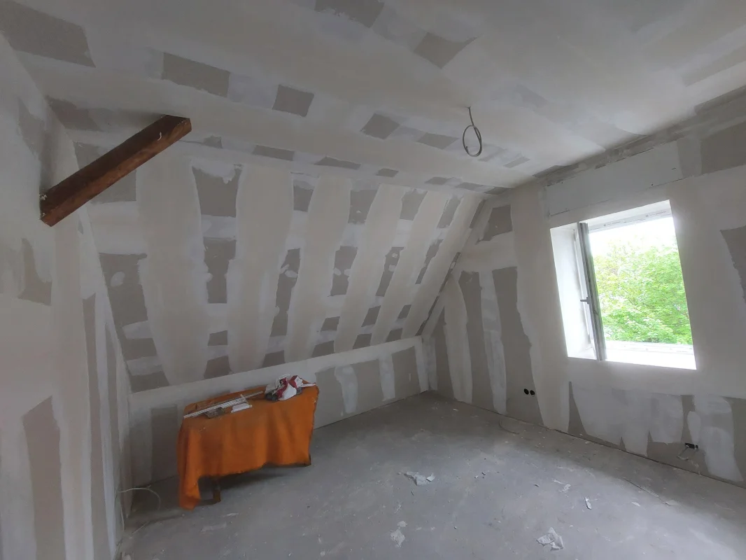 Saubere Verkleidung von Schrägen und Gauben mit Gipskarton. Exakte Kanten und Übergänge, Fensteranschlüsse ordentlich ausgeführt. Danach sind die Flächen malerfertig und der Raum wirkt größer.