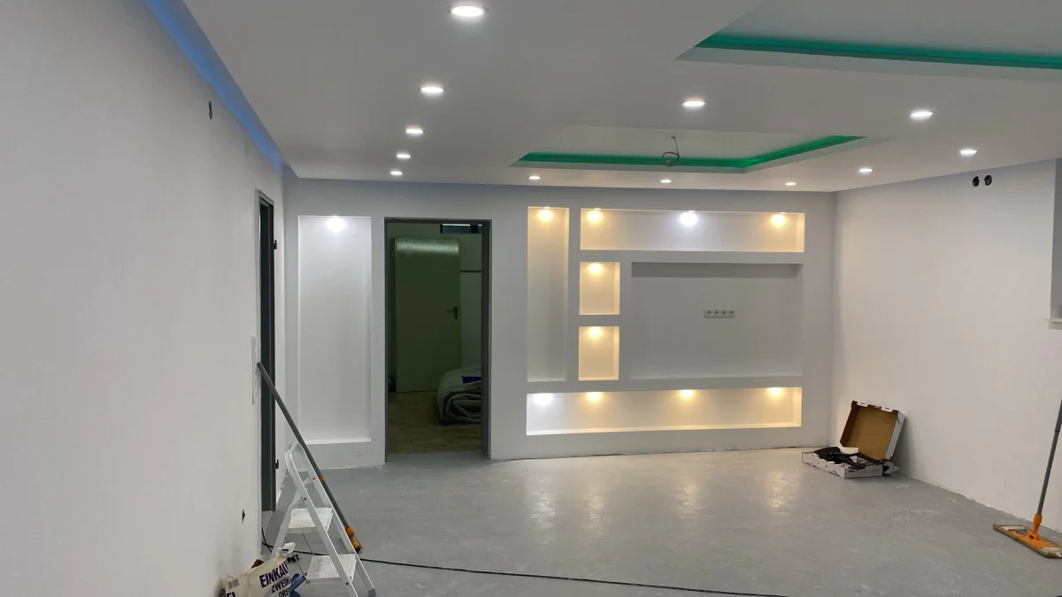 Indirektes Licht sorgt für weiche, stilvolle Atmosphäre. Wir bauen Lichtvouten, Stufen und Gipselemente, führen Kabel versteckt und bereiten alles für LED-Bänder und Spots vor – modern und wohnlich.